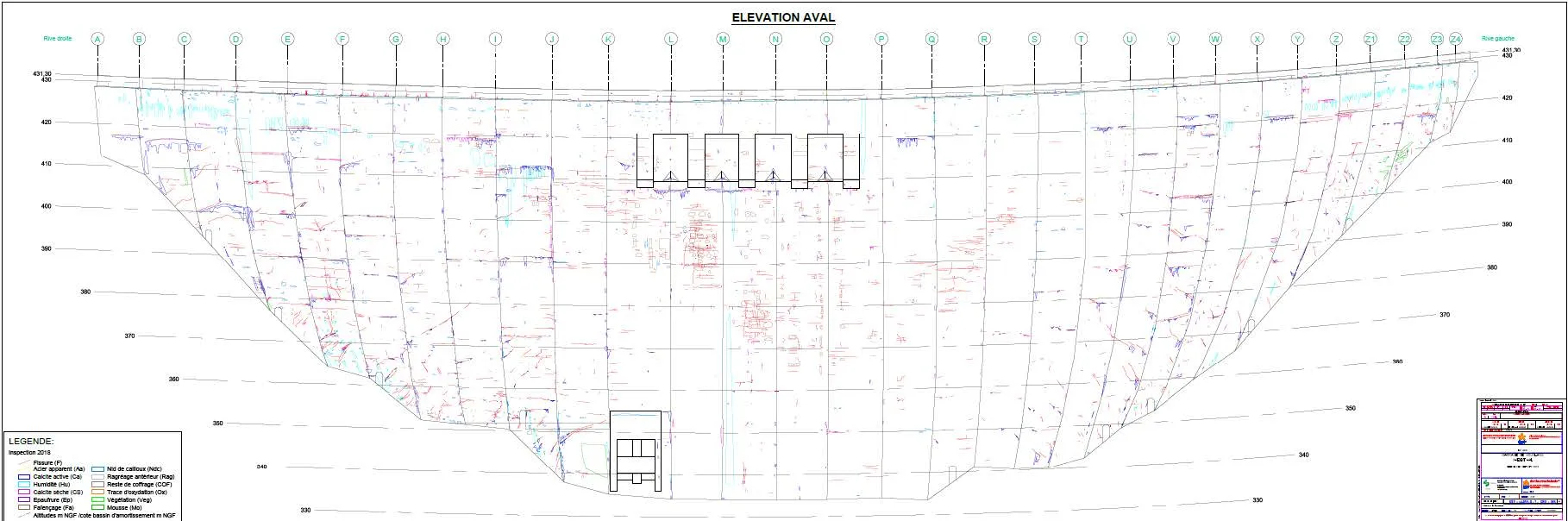 Dans le cadre suivi bi décennale du barrage de Vouglans (39), setec diadès a été missionné par EDF afin d’effectuer le relevé des défauts et détails particuliers sur le parement aval complet de la voûte du barrage Vouglans.